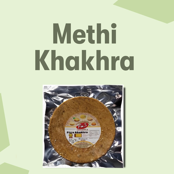 Methi is commonly used in flavoring Indian curries. The leaves from the plant are used in salads and in many ways while cooking Indian food. Methi has a strong aroma which helps make the dishes smell good. Methi khakhra is delicious yet very beneficial in terms of its medicate value. In Gujarat, Methi is mostly used for making thepla which is a common snack here and tastes good with pickle. You can have the taste of it by eating this khakhra and adding pickles on the side.